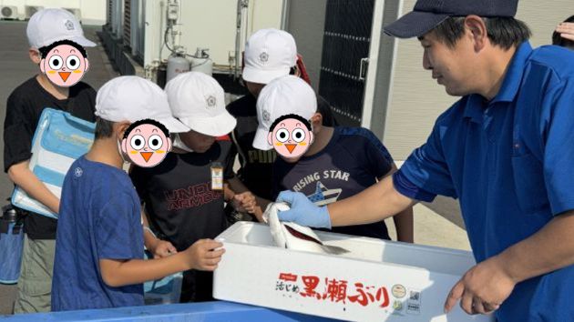 「黒瀬ぶり」が入った箱を持つ体験では、「何キロかな?」「思ったより重い!」と教科書だけではわからない発見もいっぱい。