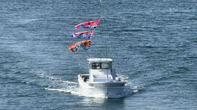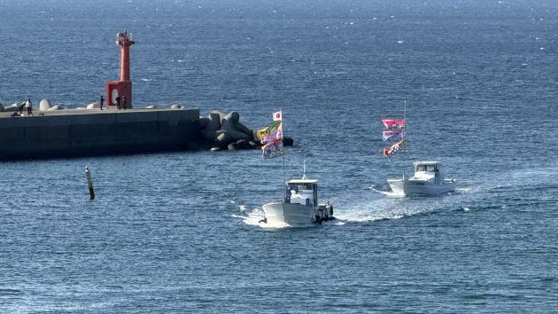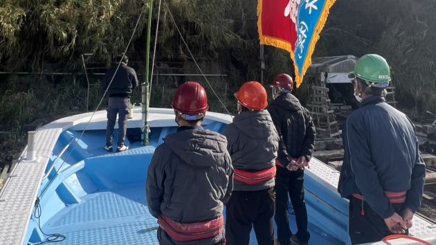 澄み渡る青空のもと、色鮮やかな大漁旗がはためき、関係者の皆様にご参列いただきました。船の安全と、今後の操業の発展を祈念する晴れやかな船出となりました。